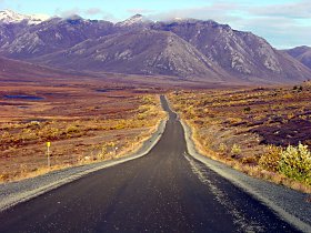 Was für ein Tag! Aber der Reihe nach...: Schon vor Sonnenaufgang vom Wecker wach. Kurz vor 8 Uhr Abfahrt Richtung Dempster Corner. Gerade auf