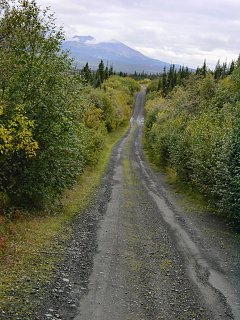 Die North Canol Road führt nicht nur durch geröllhaltige Tundra.. schmale kurvige hügelige Waldstrassen auf dutzende von Kilometern!