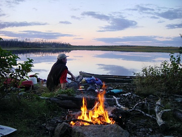 Lagerfeuers und die Rufe der Enten auf dem See.